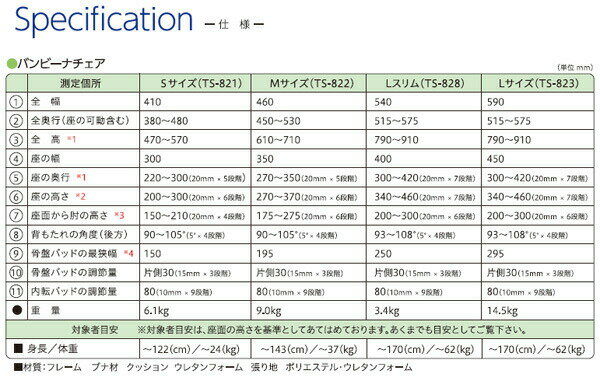 ●サイズ/全幅59×全奥行(座の可動含む)51.5〜57.5×全高79〜91cm、座幅:45cm、座奥行:30〜42cm(2cm×7段階)、座高:34〜46cm(2cm×7段階)、座面〜肘の高さ:20〜30cm(2cm×6段階)●重さ/14.5kg●材質/フレーム:ブナ材、クッション:ウレタンフォーム、張り地:ポリエステル・ウレタンフォームまたはビニールレザー●適応身長/〜170cm●適応体重/〜62kg●背もたれ/角度(後方):93〜108°(5°×4段階) ・お子さまの姿勢を成長に合わせて3サイズご用意しました。