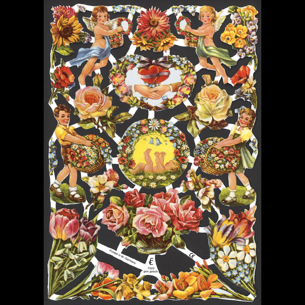 スクラップシート(フラワーバスケットと天使)【クロモス/ErnstFreihoff】