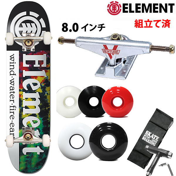 スケボー コンプリート ELEMENT エレメント SECTION 8.0x31.75インチ +ベンチャー + ウィール52mm 選べるウィール(レンチ+ケースサービス)